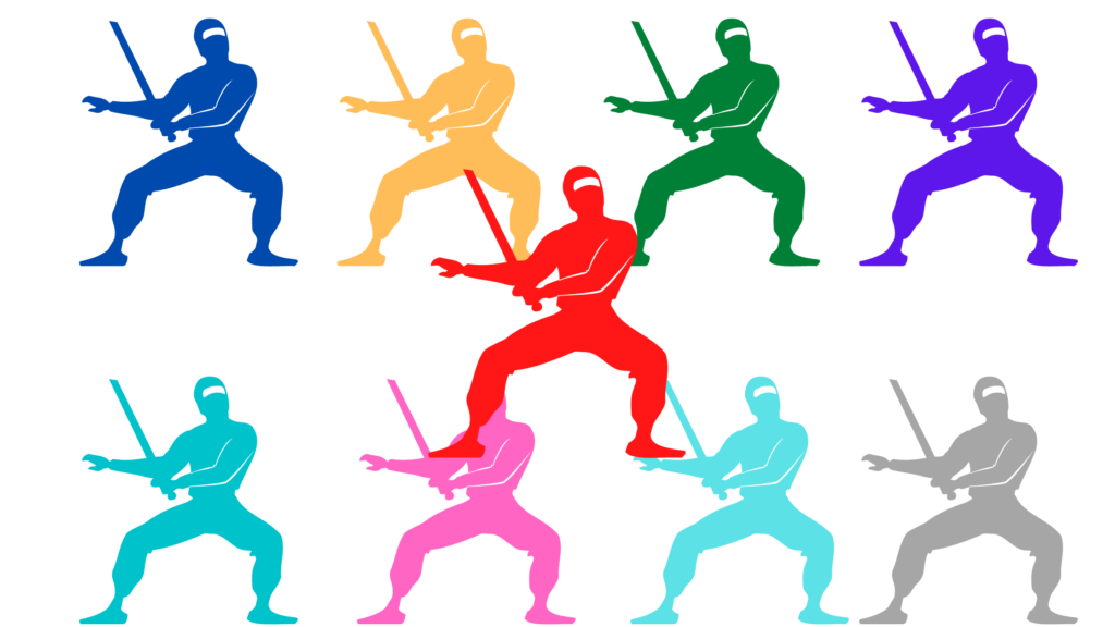という掛け声(手は手裏剣を投げるような動作をします。)で始まります。