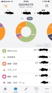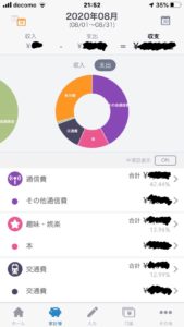 このように内訳まで円グラフで表してくれるので、今月は何に多くのお金を使ったのかが簡単に知ることができます。